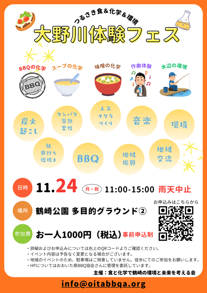 【募集終了しました】2025年11月24日(月・祝)開催 ”つるさき食&化学&環境 大野川体験フェス” (場所:鶴崎公園 多目的グラウンド②)”